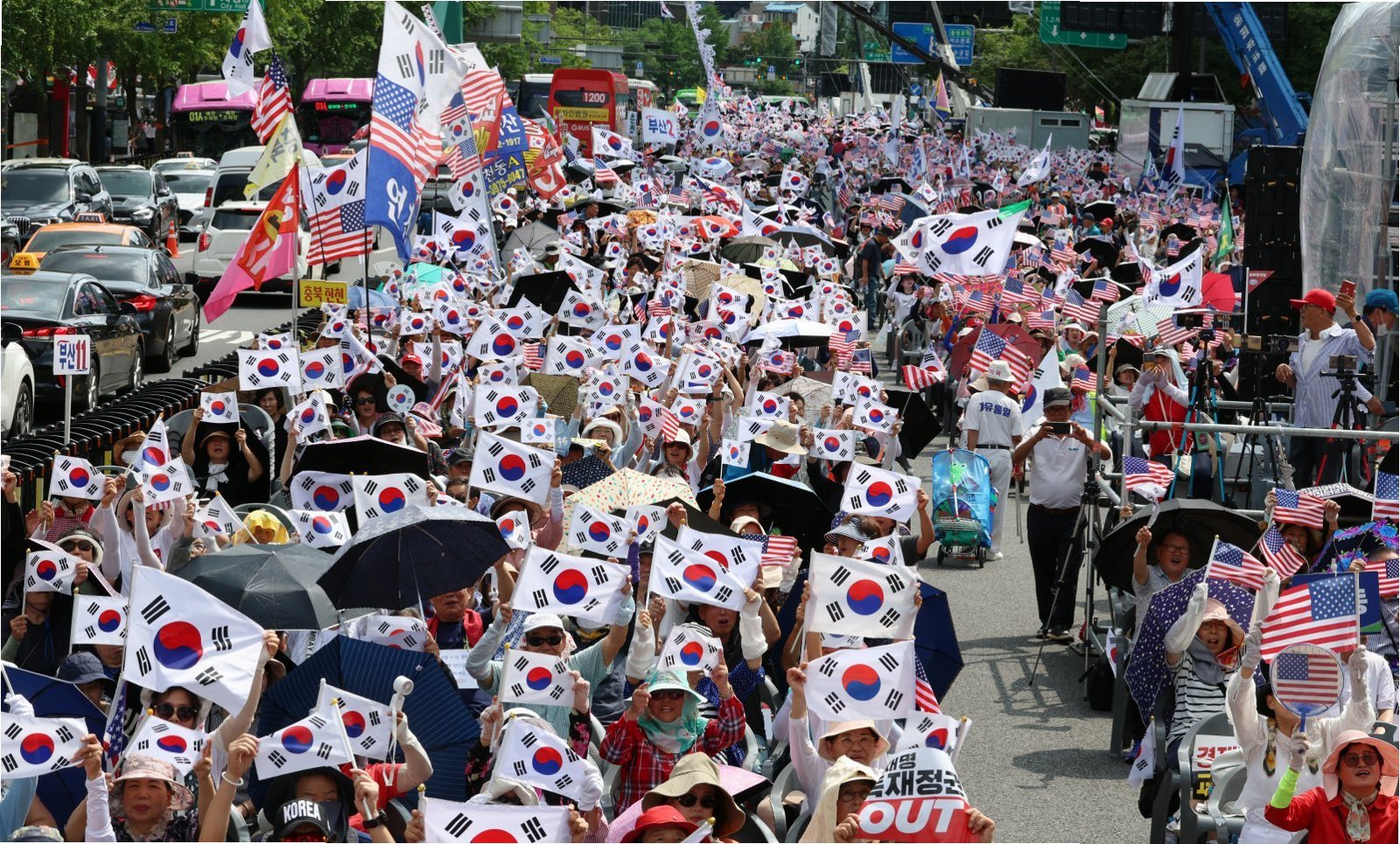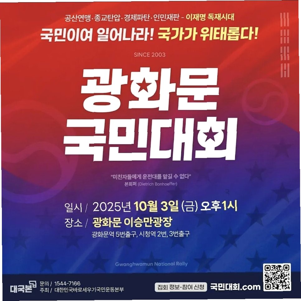 종로구 동화면세점 앞에서는 전광훈 목사가 이끄는 대한민국바로세우기국민운동본부(대국본)의 '광화문 국민대회'가 열렸습니다. 약 7천 명의 참가자들은 태극기와 성조기를 흔들며, 정부를 향한 비판의 목소리를 높였습니다. '반국가정권 심판한다'는 구호와 함께 이재명 대통령과 더불어민주당을 비판하는 구호가 울려 퍼졌습니다. 연단에 오른 한 참가자는 대장동 사건 1심 판결에 대한 검찰의 항소 포기를 규탄하기도 했습니다. 이들의 외침은 광화문 광장을 뜨겁게 달구었습니다.