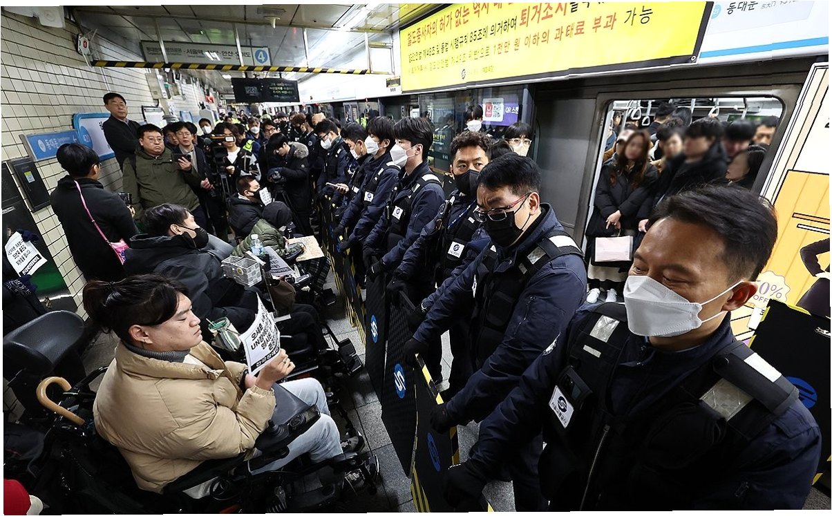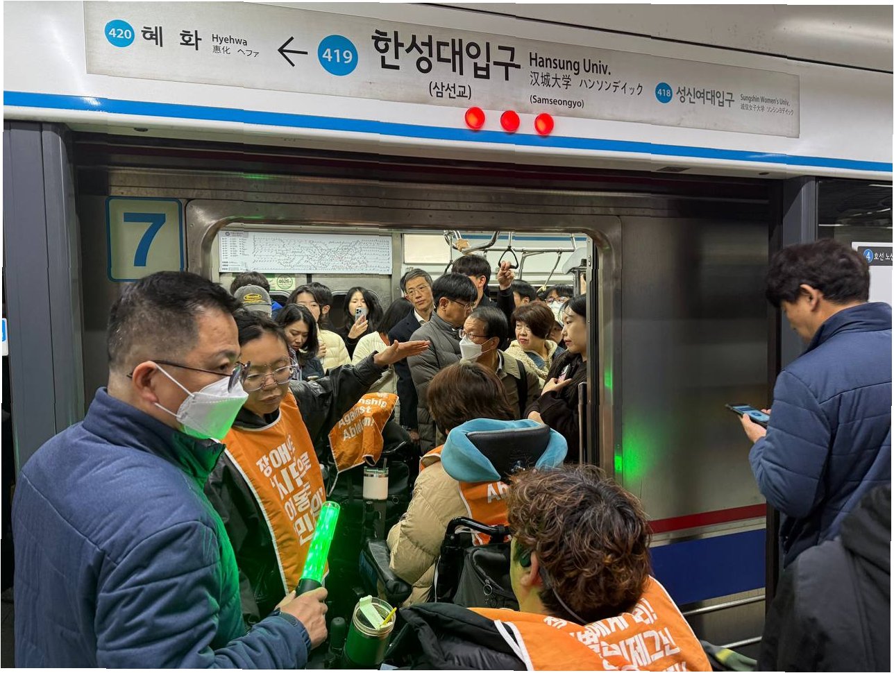 출근길 혼란을 야기한 전장연 시위: 5호선 광화문역 무정차 통과