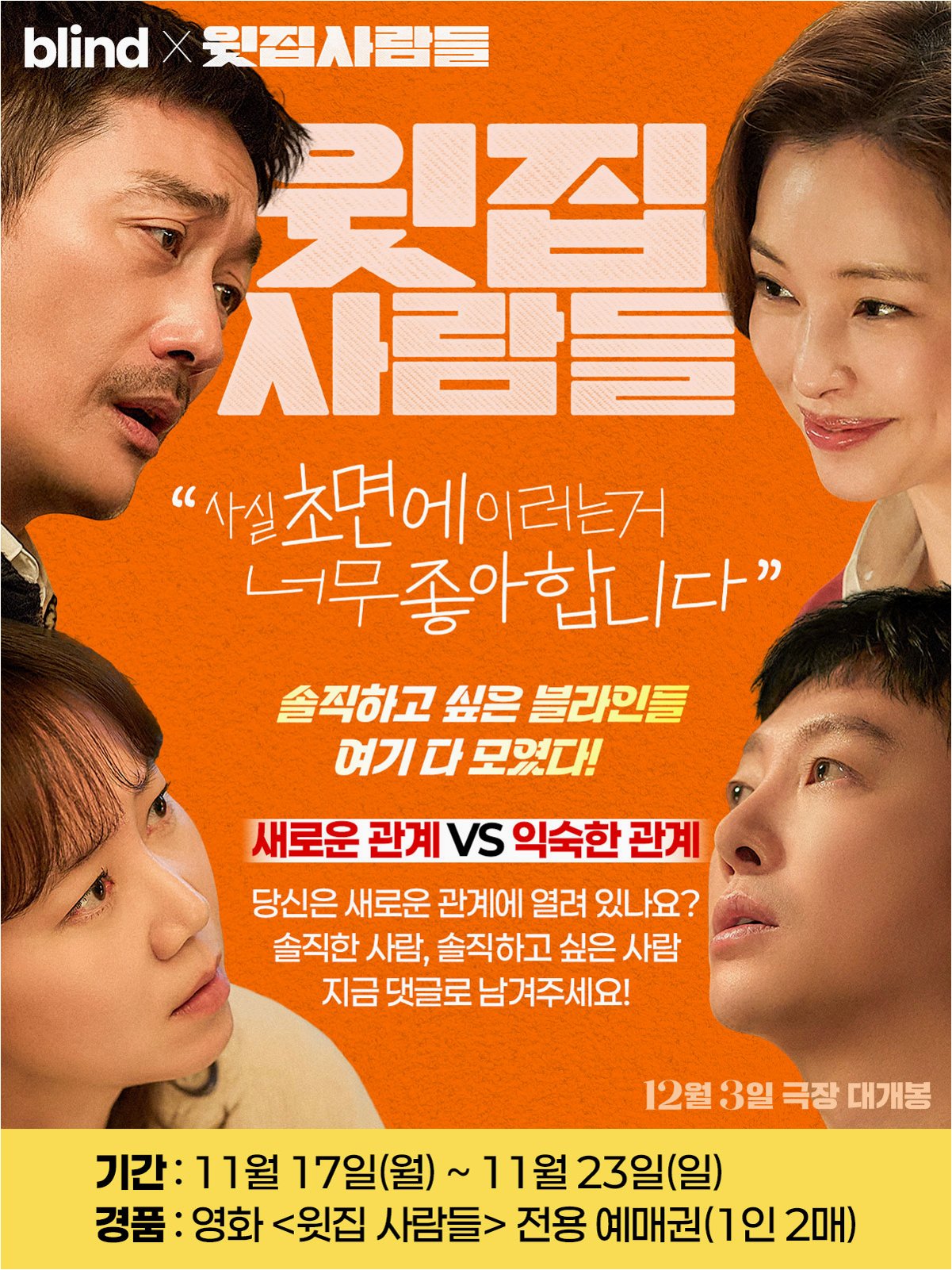 A.윗집 부부와 아랫집 부부가 층간소음으로 인해 만나게 되면서 벌어지는 예측불허의 이야기입니다. 겉으로는 평온해 보이지만, 그 속에는 숨겨진 욕망과 갈등이 존재합니다.