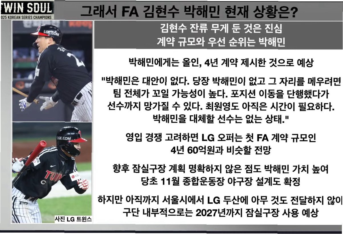 | 65억 제안 거절, 박해민이 '페이컷' 감수하고 LG 잔류를 택한 이유 (0) | 2025.11.22 |