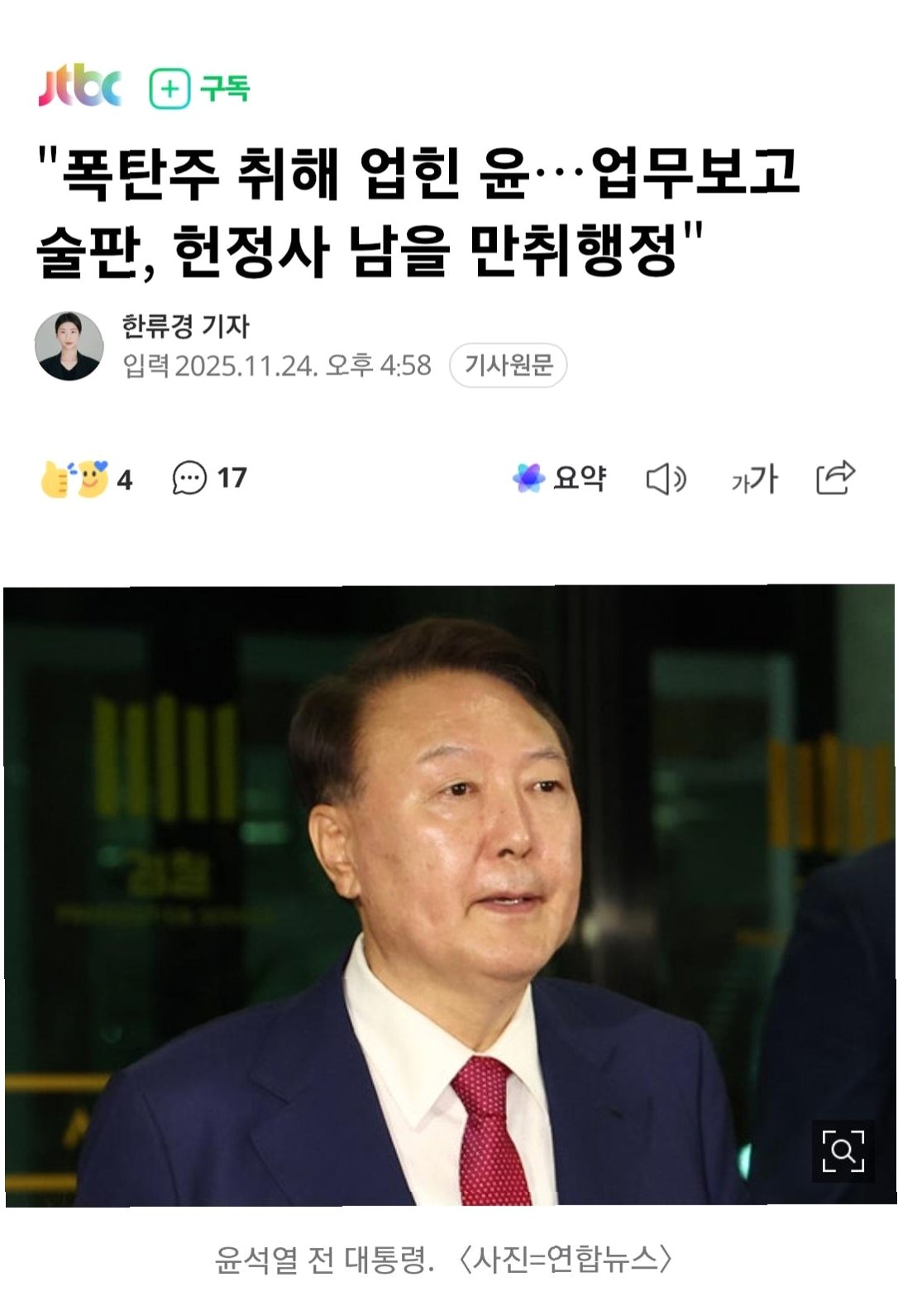 Q.윤석열 전 대통령의 만취 사건은 구체적으로 어떤 내용인가요?