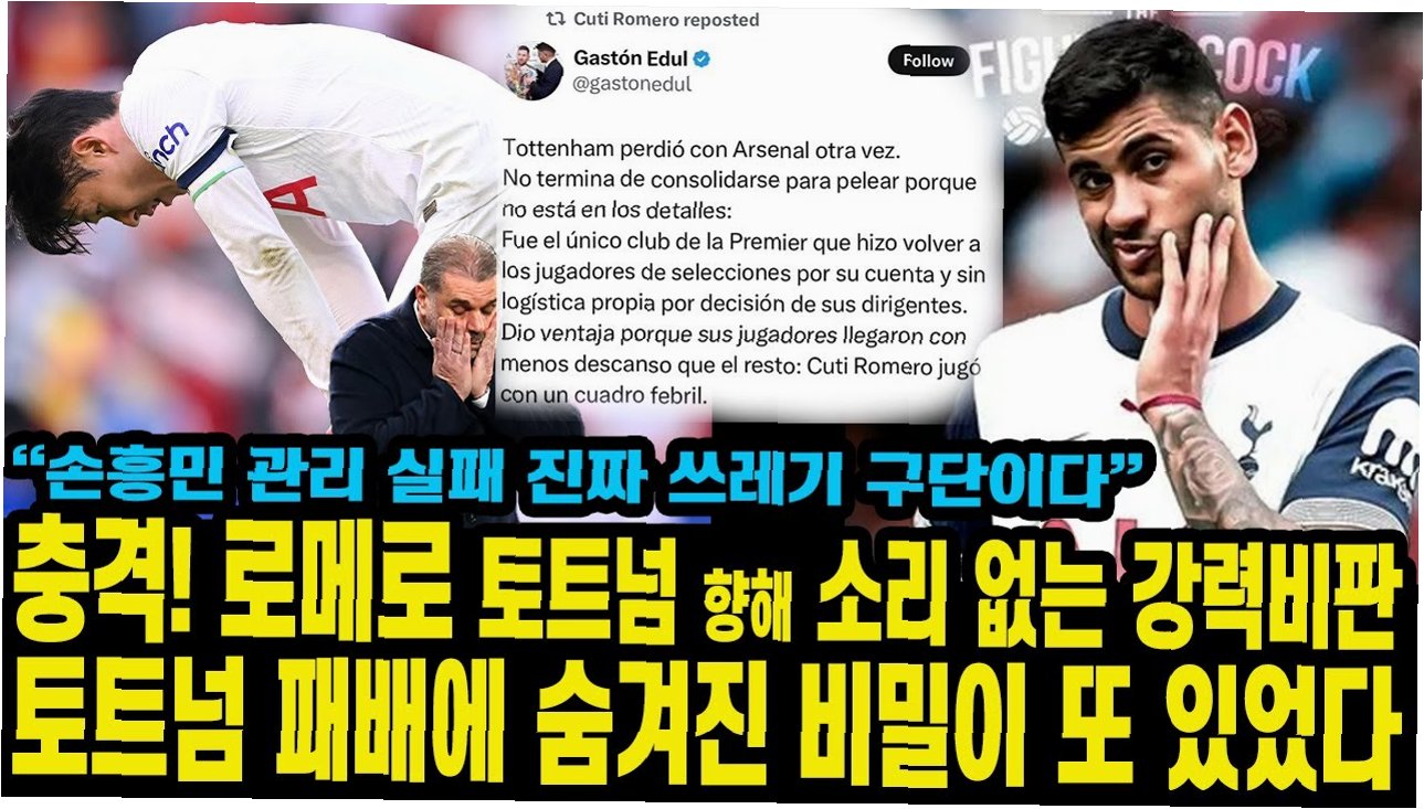 로메로는 PSG와의 경기에서 여러 차례 실수를 범하며 팀 패배의 빌미를 제공했습니다. 특히, 파울로 페널티킥을 헌납하며 팀의 위기를 자초했고, 수비 불안을 야기하며 PSG의 득점에 기여했습니다. 풋볼런던은 “앞선 선수들이 비티냐에게 붙지 않자 직접 압박하러 갔지만 이미 늦었다”라며 로메로의 판단 미스를 지적했습니다. 주장으로서 팀을 이끌어야 하는 로메로에게는 더욱 가혹한 평가가 이어졌습니다. 팀 내 심리적 부담이 가장 큰 선수로 꼽히는 로메로가 이러한 압박감을 이겨내고 반등할 수 있을지 귀추가 주목됩니다.