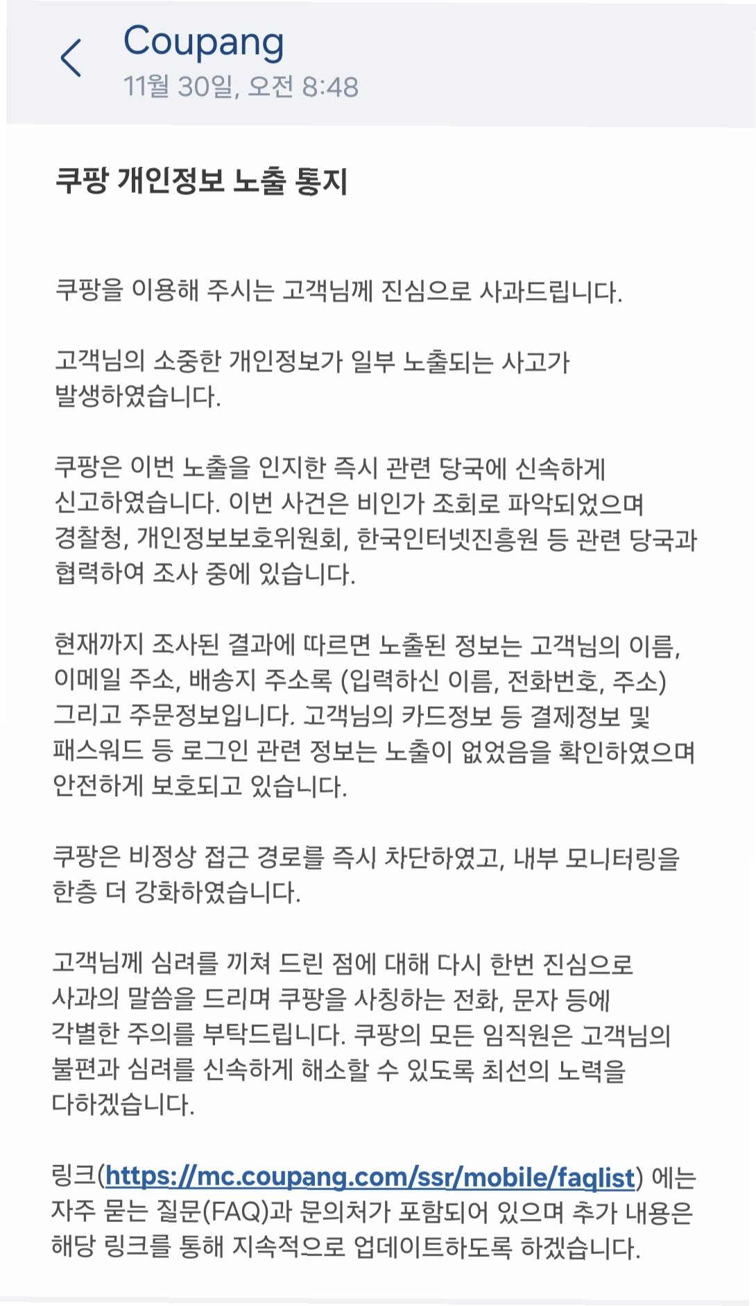 | 쿠팡 개인정보 대규모 유출: 3370만 명의 정보, 무엇이 문제였나? (0) | 2025.11.30 |
