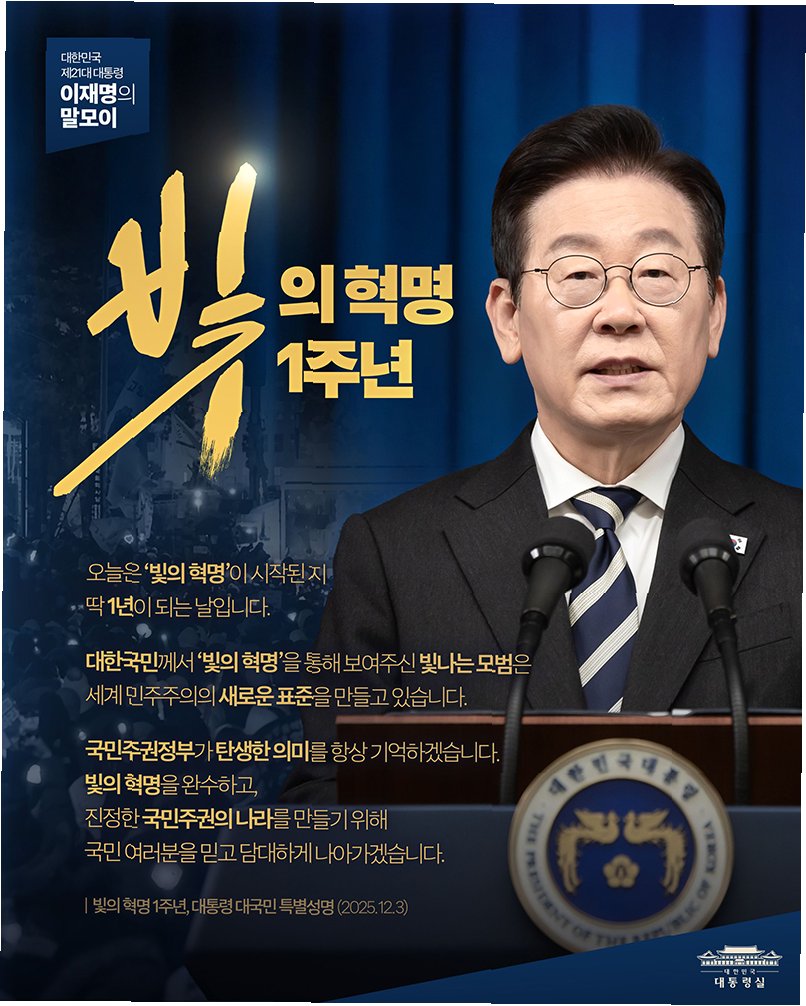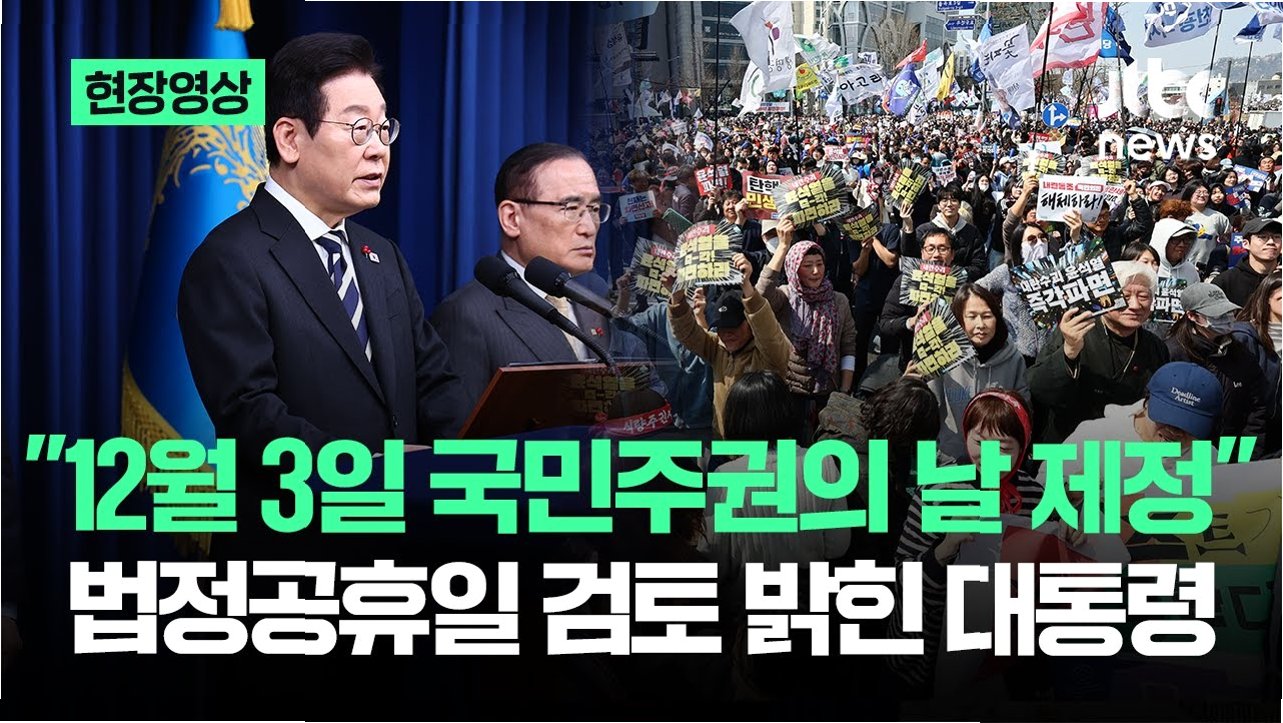 이재명 대통령이 12월 3일을 '국민주권의 날'로 지정하고 법정공휴일로 만들겠다는 뜻을 밝히면서 사회적으로 뜨거운 논쟁이 시작되었습니다. 이는 지난해 비상계엄이 일어난 12월 3일의 역사적 사건을 기리고, 국민의 용기와 헌신을 기억하기 위한 취지로 풀이됩니다. 이 대통령은 '빛의 혁명'으로 표현하며, 이 날을 통해 국민주권의 중요성을 강조하고 있습니다. 이 제안은 단순히 기념일 지정을 넘어, 대한민국의 민주주의 역사를 되새기고 미래를 위한 교훈을 얻는 계기가 될 수 있다는 점에서 큰 의미를 지닙니다.