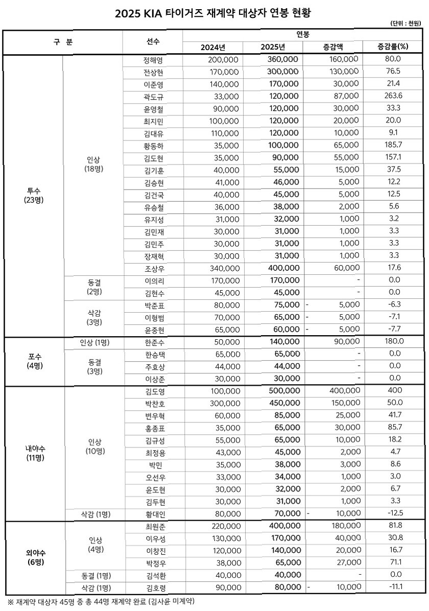 지난해 KIA는 우승을 차지하며 선수단 전체에 연봉 잔치를 벌였지만, 올해는 팀 성적 부진으로 인해 많은 선수들이 연봉 삭감의 칼날을 피하지 못했습니다. 김호령 역시 작년 부진으로 삭감 대상이었지만, 올해 눈부신 활약으로 상황을 반전시켰습니다.