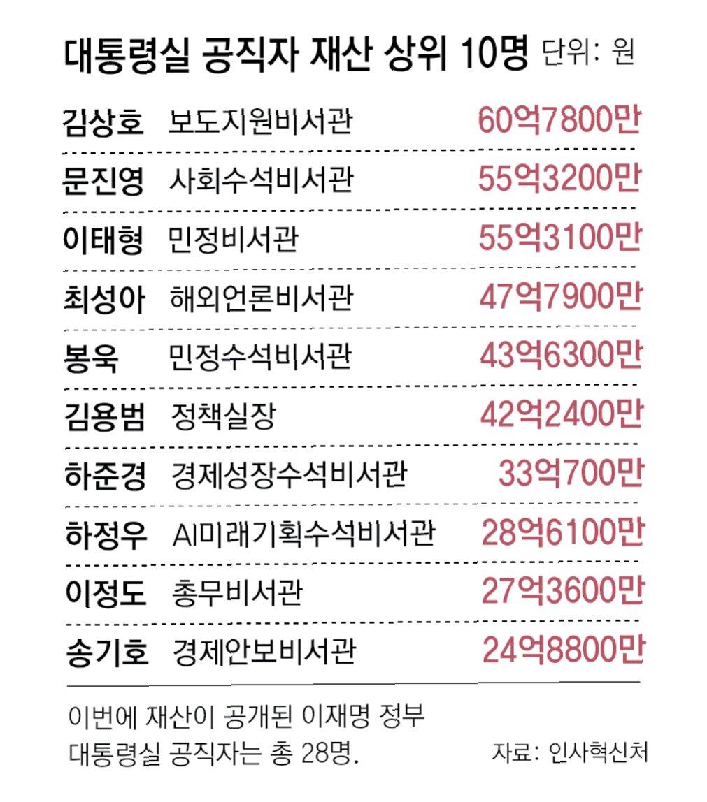 대통령비서실, 부동산 재산 실태 공개: 평균 20억 원!