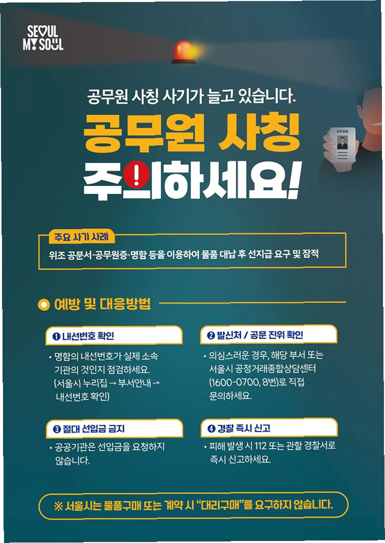 업체는 의심을 품고 시에 확인한 결과, 해당 이름의 주무관은 존재하지 않았습니다. 이는 명백한 사기 시도였습니다. '내일 뵙겠다'는 말에 답이 없었다는 부대표의 증언은 사기범의 당황스러움을 보여줍니다.