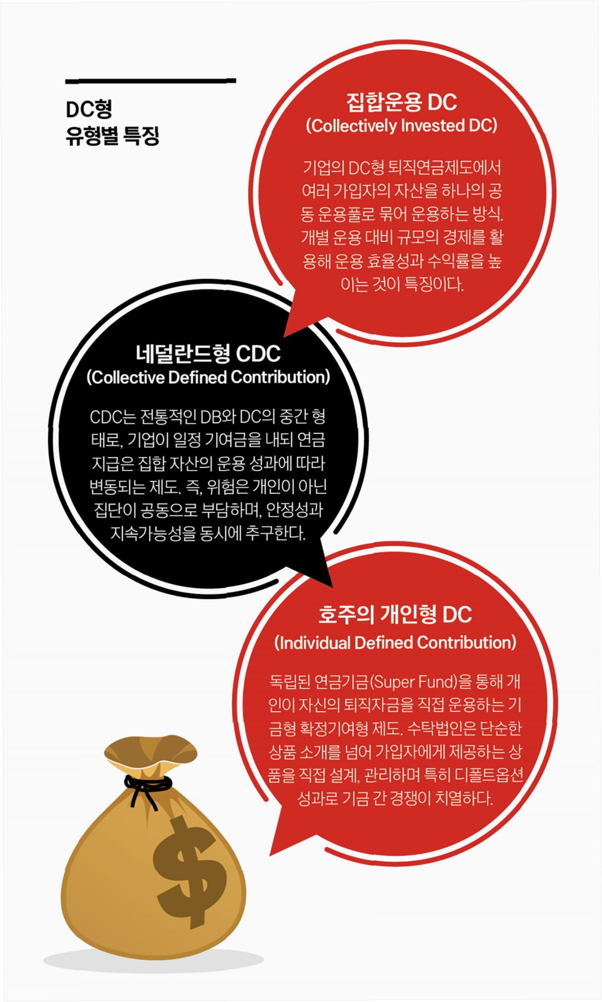 A.근로자가 개별 금융 상품을 선택하는 대신, 국민연금처럼 연금공단에 적립하고 공단이 운용사를 선정하는 방식입니다.