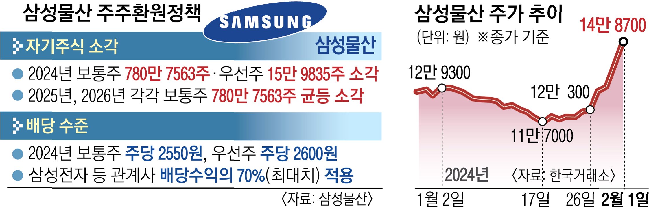 삼성전자가 올해 상반기 중으로 보유 자사주 약 82.5%에 해당하는 8700만 주를 소각합니다. 이는 약 16조 5300억 원 규모로, 주주가치 제고를 위한 2024년 10조 원 자사주 매입 계획의 일환입니다. 지난해 2월 3조 원어치 자사주 소각에 이어 이번 계획은 임직원 보상을 제외한 잔여 물량입니다. 주가 상승으로 소각액은 당초 예상보다 약 3배 증가했으며, 이는 넥스트트레이드(NXT) 애프터마켓에서 삼성전자 주가를 19만 원대로 끌어올리는 데 기여했습니다. 삼성전자는 미래 성장을 위해 지난해 역대 최대 규모인 37조 7000억 원을 연구개발(R&D)에 투입했다고 밝혔습니다.