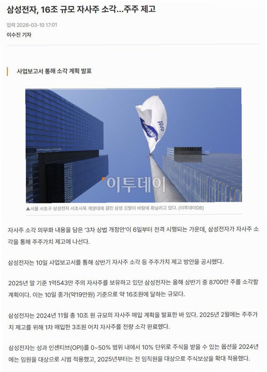 삼성전자와 SK㈜가 각각 16조 원, 5조 원 규모의 자사주를 소각하며 주주가치 제고에 나섰습니다. 이는 개정 상법 시한보다 앞선 조기 소각으로, 기업의 재무 건전성 강화와 주주 신뢰 증진을 목표로 합니다. SK네트웍스도 동참하며 주주가치 제고 움직임이 확산되고 있습니다.