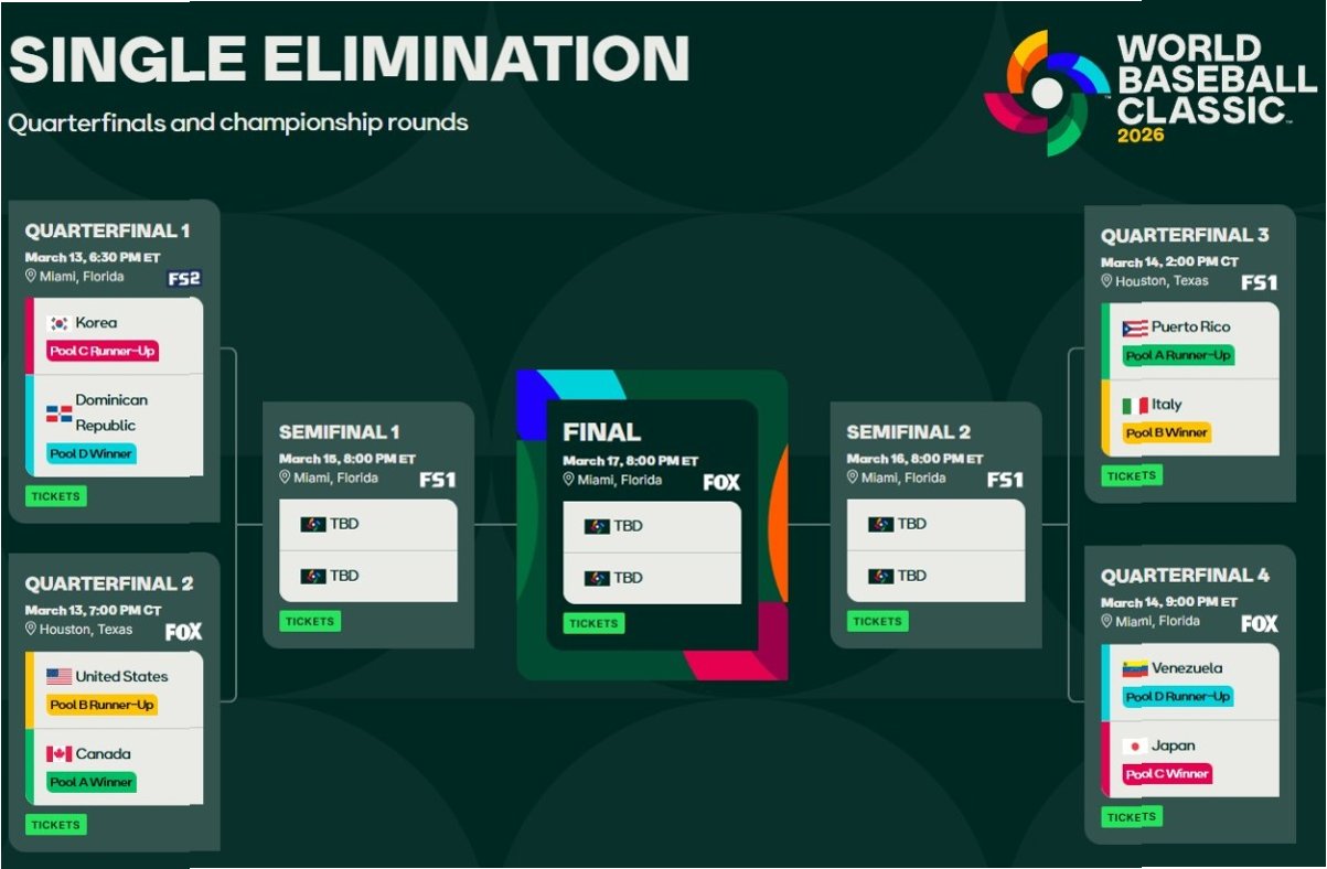 WBC 8강 대진표 공개, 한국의 상대는 '최강 타선' 도미니카 공화국