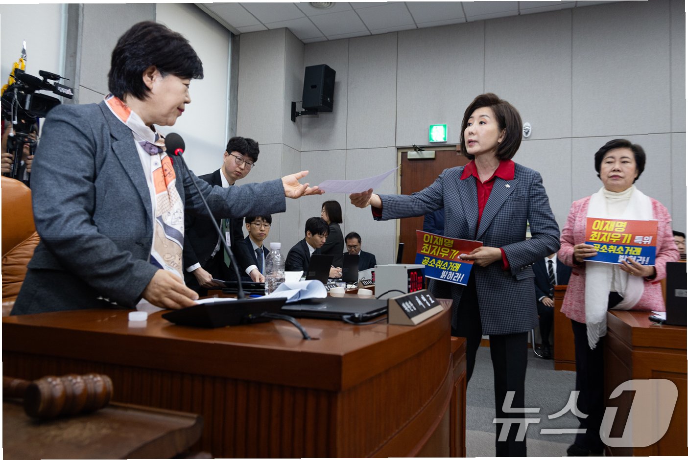 서영교 위원장이 국민의힘 의원들에게 자리에 앉아줄 것을 요청하자, 나경원 의원은 서 위원장이 '나경원 의원 앉으세요'라고 이름을 부르자 '이름 함부로 부르지 마세요'라며 불편한 심경을 내비쳤습니다. 이에 서영교 위원장은 '그럼 뭐라고 불러요? 너경원이라고 불러요?'라고 받아치며 설전이 오갔습니다. 이처럼 첫 회의부터 이름 호명을 둘러싼 신경전이 벌어지며 회의 분위기는 더욱 얼어붙었습니다.