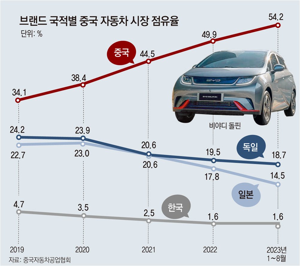 A.중국 자동차 업체들의 기술력 향상, 특히 전기차 분야에서의 경쟁력 강화와 공격적인 해외 시장 진출이 주요 원인입니다. 또한, 중국 내수 시장의 규모와 정부의 지원 정책도 영향을 미쳤습니다.