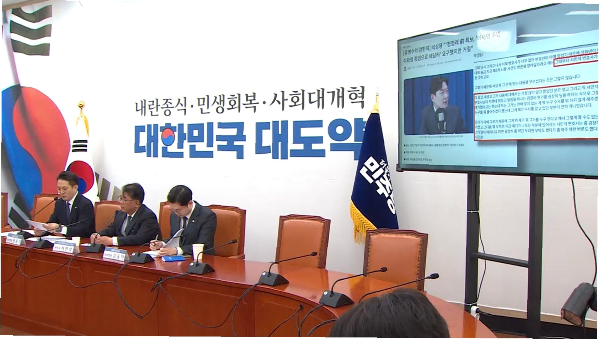 A.민주당의 주장을 '공작 정치'로 규정하며, 녹취록의 맥락을 의도적으로 편집했다고 비판하고 있습니다. 또한, 변호인이 공천을 대가로 녹취록을 폭로했다는 의혹을 제기했습니다.