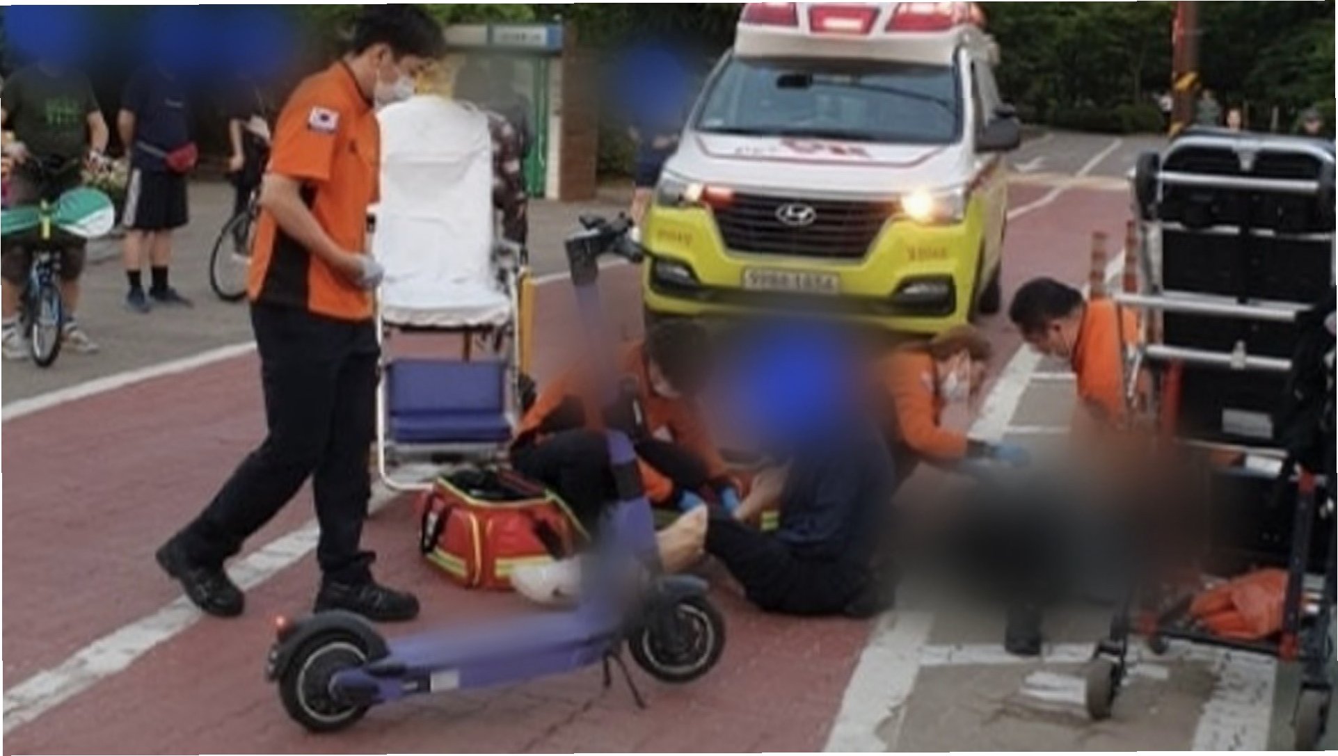 A.엄마는 둘째 딸과 산책 중, 킥보드가 달려오는 것을 보고 딸을 감싸다 사고를 당했습니다.