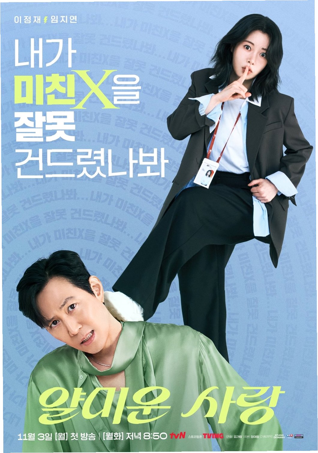 tvN 월화드라마 '얄미운 사랑'은 초심을 잃은 국민 배우 임현준(이정재 분)과 정의 실현을 꿈꾸는 연예부 기자 위정신(임지연 분)의 갈등을 유쾌하게 그려냅니다. 이 드라마는 독특한 코미디 스타일로 시청자들의 눈길을 사로잡고 있습니다. 이정재는 톱스타 '임현준' 역을 맡아 유쾌하고 발랄한 연기 변신에 성공했습니다.