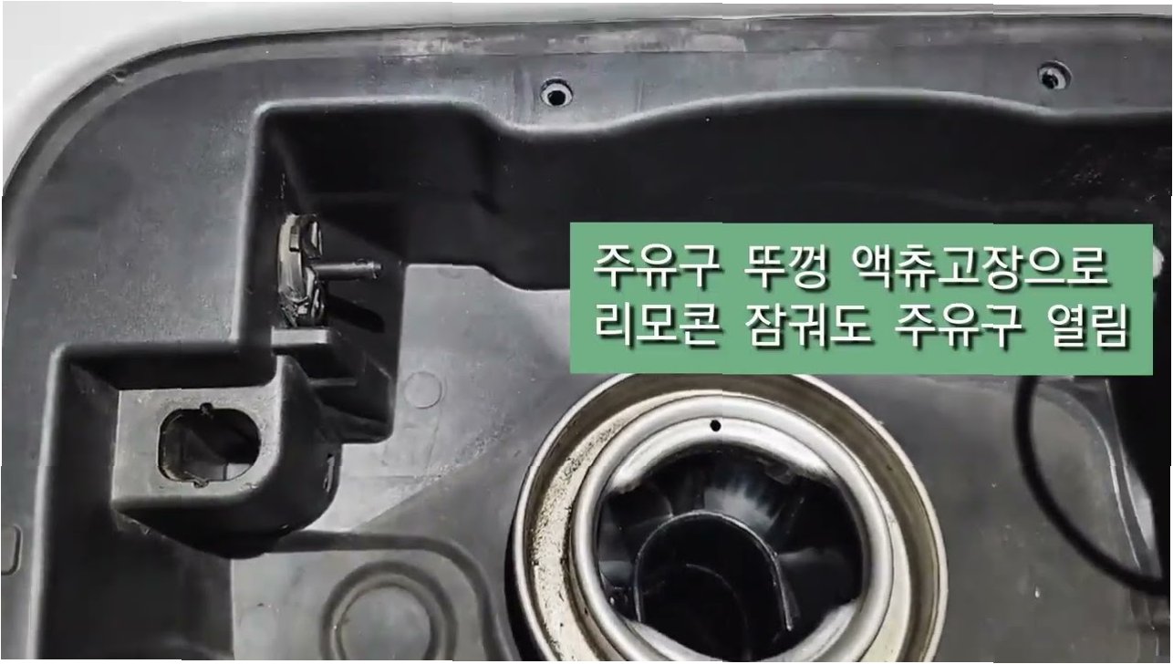 A.주유구 여닫이를 담당하는 액추에이터(구동 모터)의 고장이 주요 원인입니다. 접지 불량이나 전기 신호 오작동으로 인해 액추에이터가 작동하지 않아 주유구가 열리지 않는 문제가 발생합니다.
