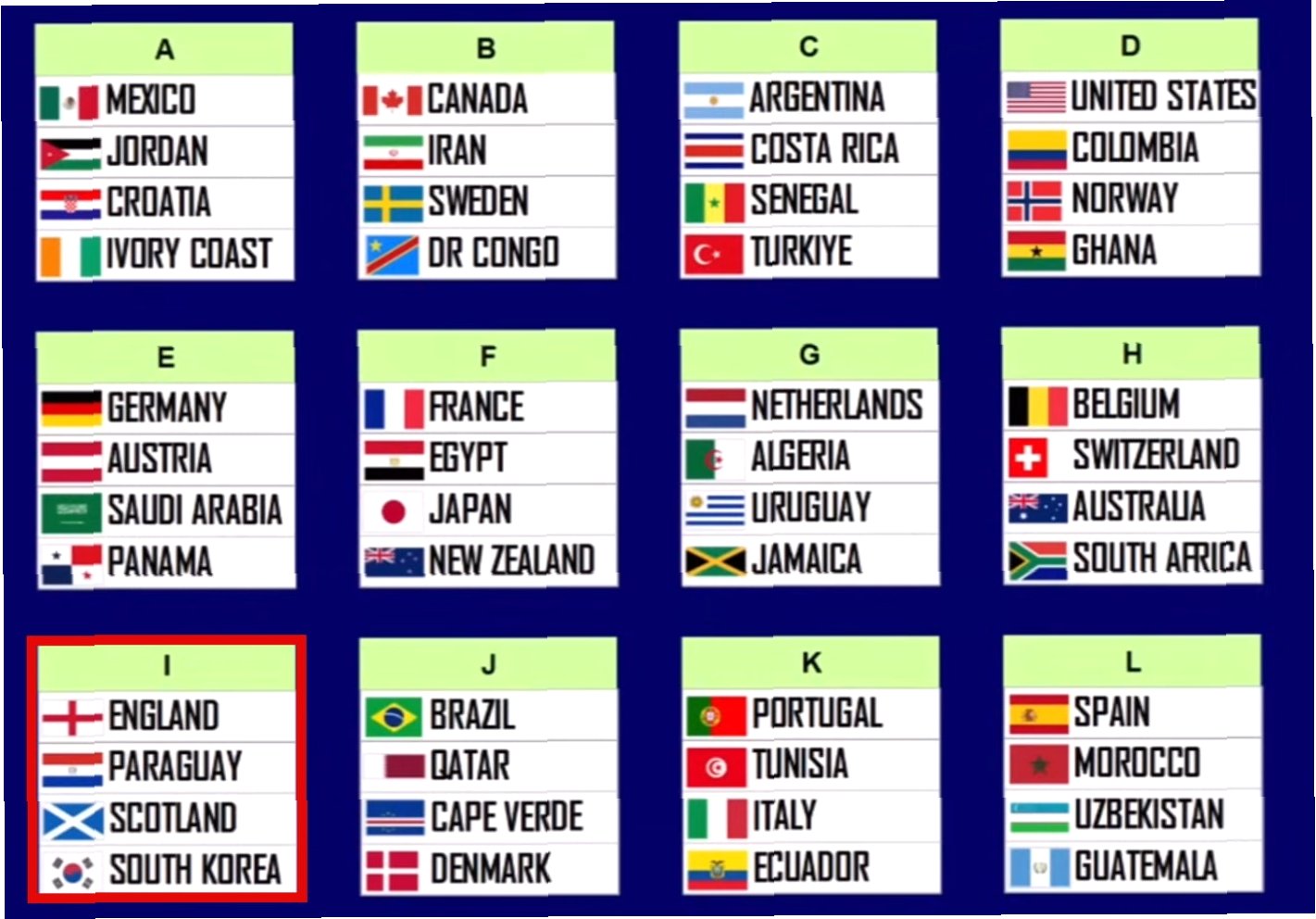 포트1에서 아르헨티나 혹은 브라질을 만나면서 포트3의 노르웨이, 포트4의 이탈리아(유럽 플레이오프를 거쳐 올라올 경우)를 만나면 32강 토너먼트 진출도 내다보기 어려운 조합으로 꼽힌다.