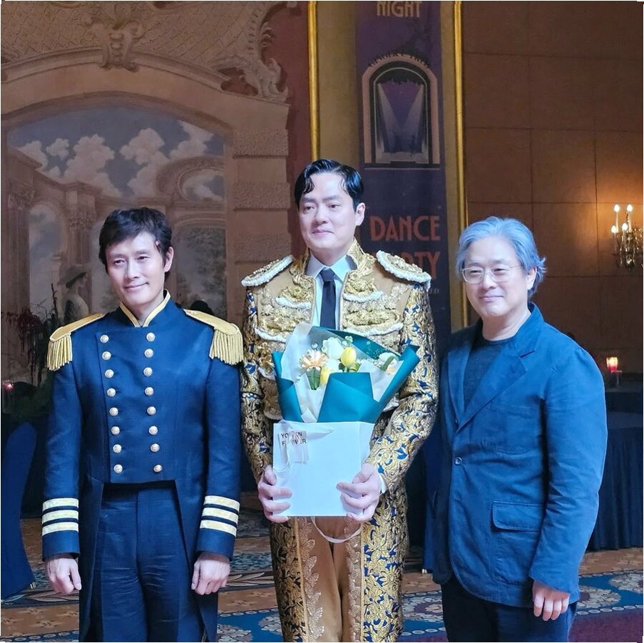 A.김형묵은 '내 마지막 촬영 날. 박찬욱 감독님과 이병헌 선배님과의 쓰리샷. 꿈꾸던 일이 현실로 이뤄진 순간', '꽃다발까지 주셨다. 나에겐 큰 영광이자 커다란 선물'이라며 벅찬 소감을 밝혔습니다.