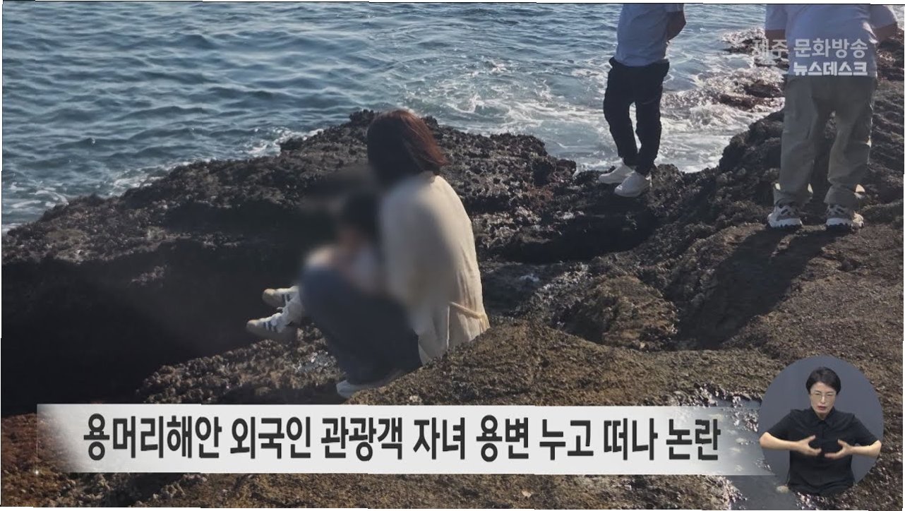 A.천연기념물인 제주 용머리 해안에서 한 중국인 관광객이 어린아이의 용변을 처리하는 과정에서 부적절한 행동을 보였고, 주변의 무관심한 태도가 문제시되었습니다.