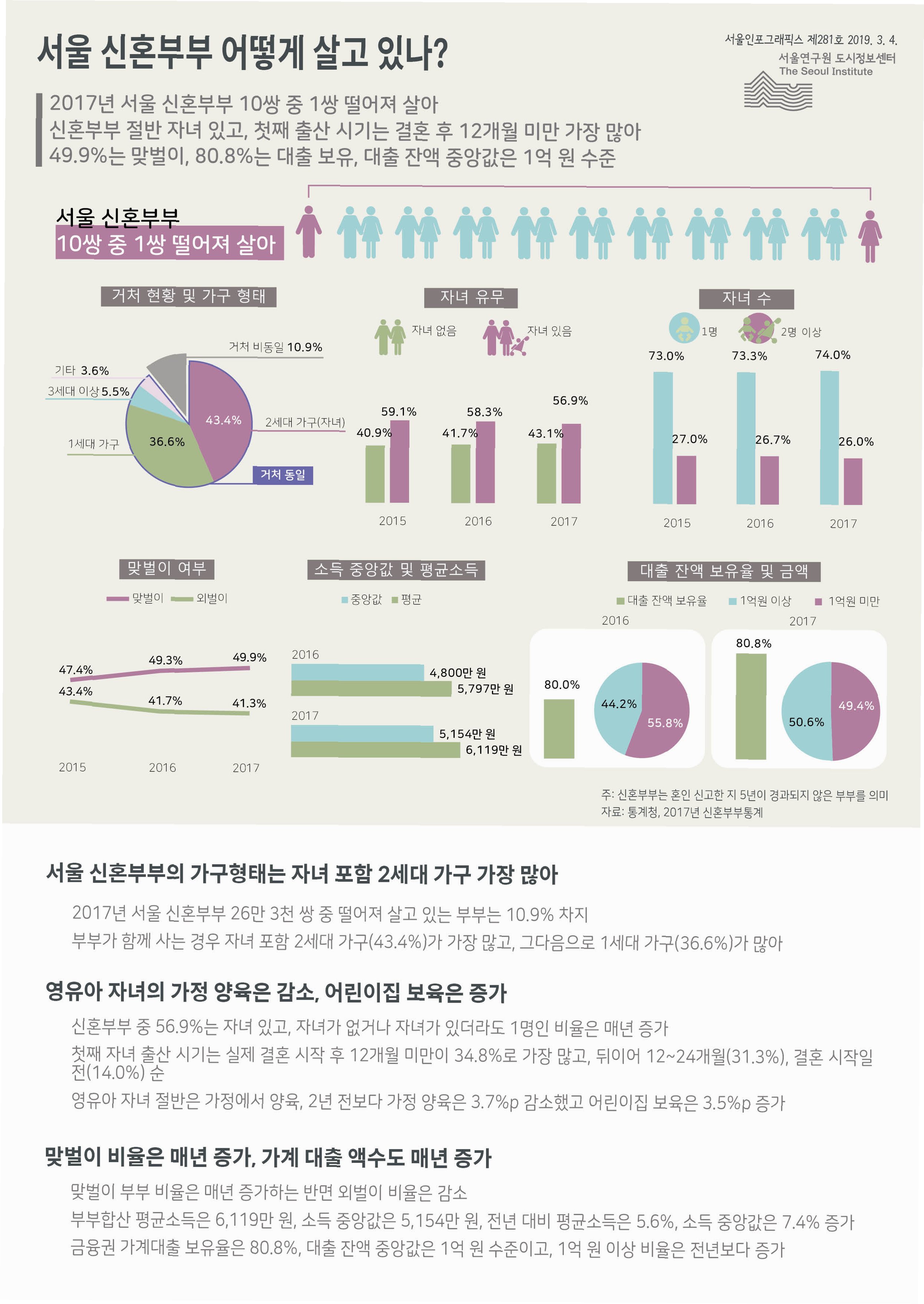 신혼부부의 절반이 아이를 선택하지 않는 시대, 맞벌이 부부의 무자녀 비중이 높음, 주택 마련의 어려움, 소득 증가에도 불구하고 늘어나는 부채, 결혼과 출산에 대한 가치관 변화.