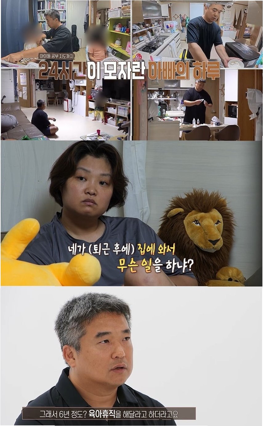 육아 휴직 20개월 차인 남편은 세 아이의 육아와 집안 살림을 전담하며 고된 하루를 보내고 있습니다. 그는 아침부터 아이들을 챙기고 집안일을 처리하느라 24시간 쉴 틈 없이 바쁜 나날을 보내고 있다고 합니다. 남편은 육아의 어려움을 토로하며, 아내가 6년 정도 육아 휴직을 해달라고 했다는 사실을 밝히기도 했습니다. 이러한 상황 속에서 남편은 '일하고 싶다, 복직이 정말 간절하다'라며 솔직한 심정을 드러냈습니다.