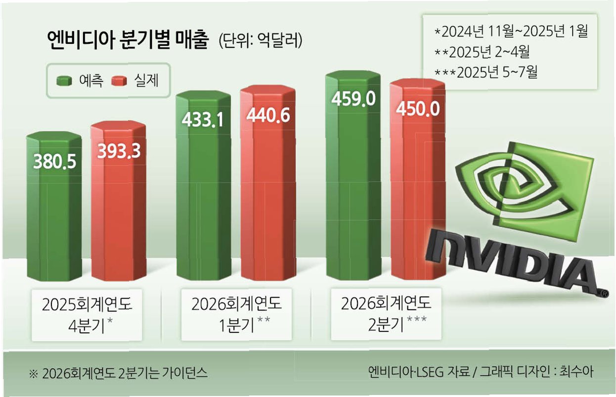 A.엔비디아의 실적이 예상치를 상회했음에도 불구하고, AI 투자 과열에 대한 시장의 우려와 높은 기대감에 대한 부담감으로 인해 투자자들이 차익 실현에 나서면서 주가가 급락한 것으로 분석됩니다.