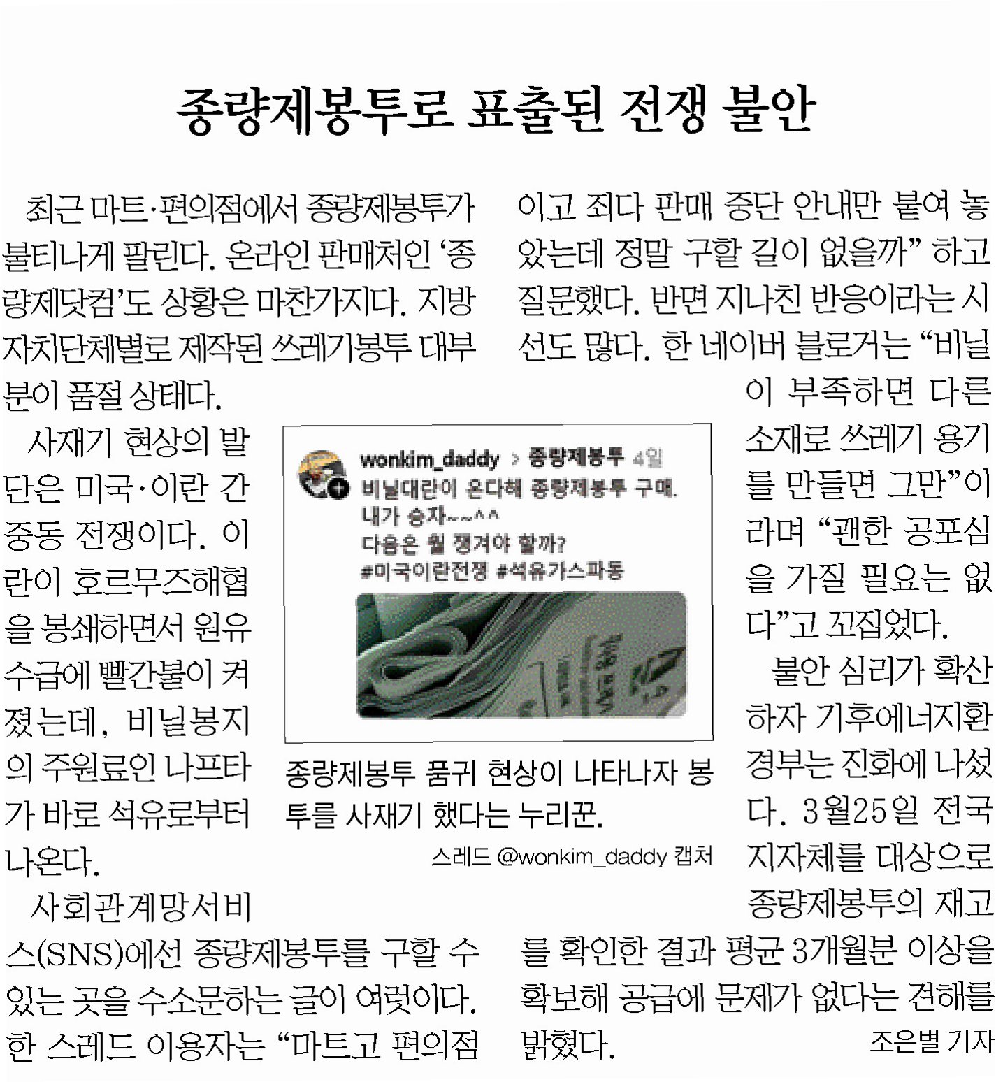 종량제 봉투 품귀 현상은 사재기 심리로 인해 발생하며, 정부는 지자체 간 재고 공유 및 재생 원료 사용 확대를 통해 공급 안정화를 꾀하고 있습니다. 원자재 가격 상승으로 인한 제작 업체의 어려움도 지원하며, 시민들에게는 필요한 만큼만 구매해 줄 것을 당부했습니다.