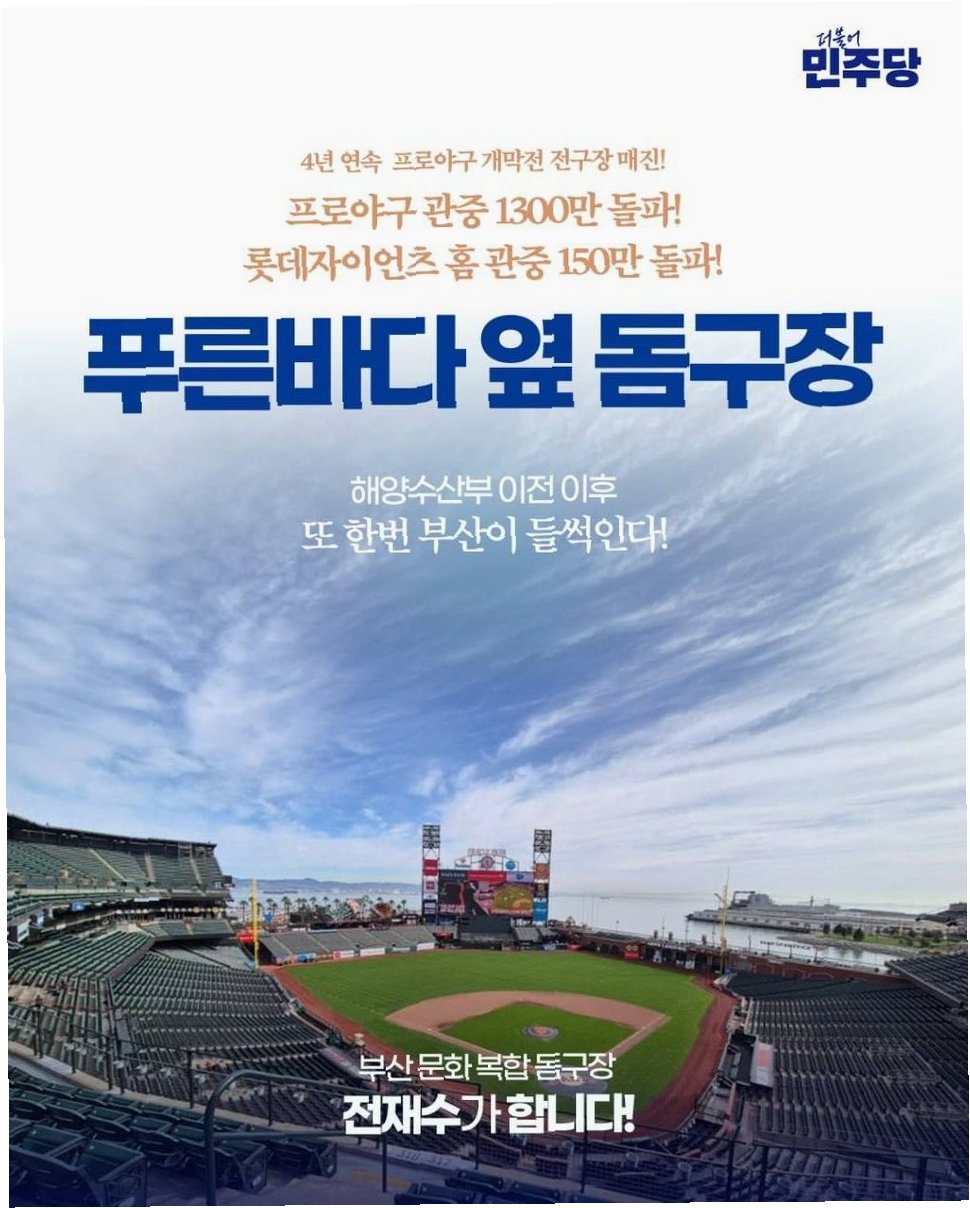 더불어민주당 부산시장 후보로 확정된 전재수 의원은 부산시의회에서 열린 간담회에서 부산의 새 야구장에 대한 구체적인 구상을 밝혔습니다. 제22대 국회 문화체육관광위원장 출신인 전 의원은 '해수부 부산 이전, 부산해사전문법원 신설, HMM 등 해운 물류기업 집적화, 50조원 규모 동남권 투자공사 설립'이라는 '해양 수도 부산 4종 세트'에 더해 북항에 개폐형 돔구장을 건설하겠다는 포부를 드러냈습니다. 이는 단순한 야구장을 넘어 부산의 해양 수도 비전을 완성하는 핵심 시설이 될 것으로 기대됩니다.